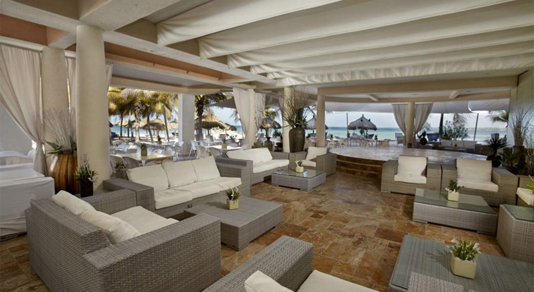 The Pure Beach Lounge Bar and Restaurant features modern white décor with cooling island breezes.