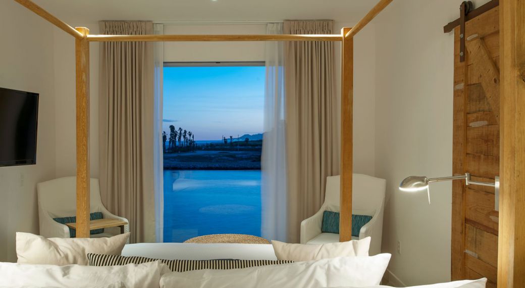 Large Suites One Bedroom with gorgeous ocean views and rustic furnishing, expansive windows with sliding glass doors with access to a patio lounge bed on the terrace, allowing you to gaze out into the magnificent Sea of Cortez. Enjoy a peaceful night’s sleep in the separate bedroom, allowing for ultimate privacy.
